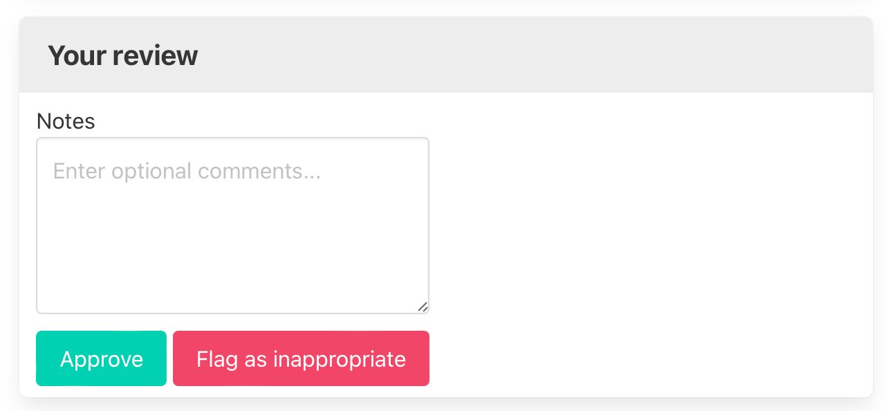 Prompt showing options to approve or flag sessions as inappropriate, along with entering comments.